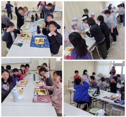 今日はお昼休みがいつもよりなが〜い、HLB (Happy Long Breake)の日でした。3年生はランチルームで学年で給食を食べました。