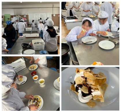 家庭科クラブでは、美味しいデザートを作りました。上手くできて、みんな笑顔でいただきました。