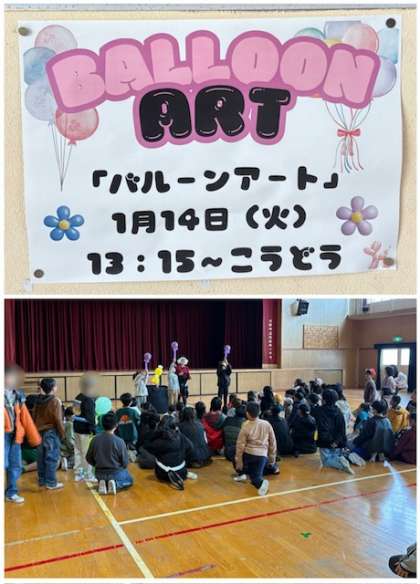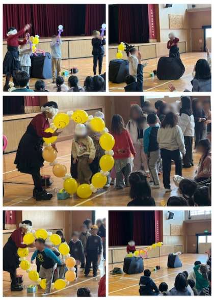 今日のHLBでは、バルーン・アートのパフォーマーの方をお招きして、講堂でパフォーマンスをしてもらいました。次々出てくる風船に、子どもたちは大喜びでした。