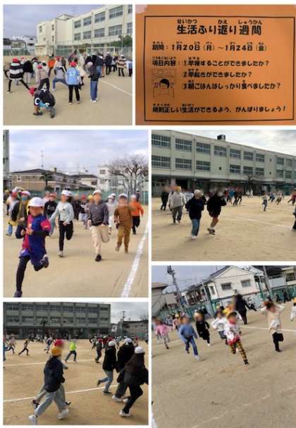 今週は1・3・5年生が、15分休憩に「かけ足」週間、家では「生活ふり返り」週間に取り組みます。
