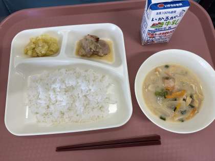 1月21日(火)の献立は「ごはん・牛乳・鶏肉の塩こうじ焼き・かす汁・くりきんとん」でした。