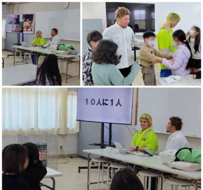今日は、3年生はゲストティーチャーにトランスジェンダーの東郷潤さん、奥さまの結香さんをお招きして、LGBTQについてのお話しを聞きました。人には、男・女の二つの性だけではなく、さまざまな性があることを実際にお話ししていただきました。とても楽しく、みんなで学ぶことができました。