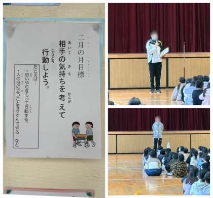 生活指導担当の先生から、2月の月目標について連絡がありました。学力向上担当の先生からは「クライミング★パワーアップ週間」についてのお知らせがありました。