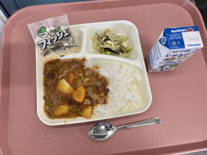 2月4日(火)の献立は「ハヤシライス・牛乳・キャベツのひじきドレッシング・ミニフィッシュ」でした。