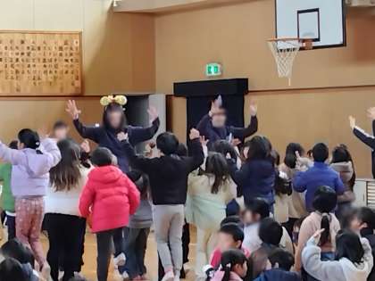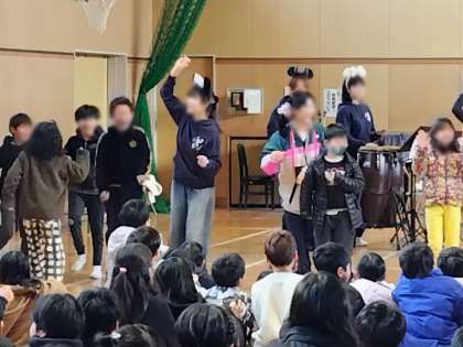 クライマックスでは、演奏に合わせてダンスを踊ったり歌を歌ったりと、体をいっぱい使って表現することができました。「音」を「楽しむ」素敵な時間となりました。大阪教育大学吹奏楽部の皆さん、ありがとうございました。
