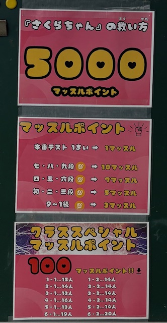 さくらちゃん、大変なことになっています。これは矢田東のみんなはがんばらなければいけません。このままでは、来年度55周年を迎えられません。さあ、来週からのパワーアップ週間チャレンジ、たるんでしまったさくらちゃんを救いましょう。