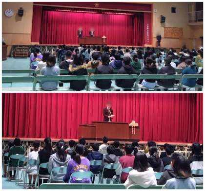 今日は本番と同じ流れで、卒業式の予行を行いました。緊張感ただよう中での練習でした。