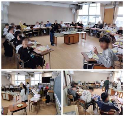 6年生は、今日が小学校での最後の給食でした。みんなで輪になって食べました。