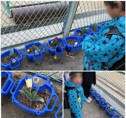 春が来ました。1年生の植えたチューリップが咲いていました。
