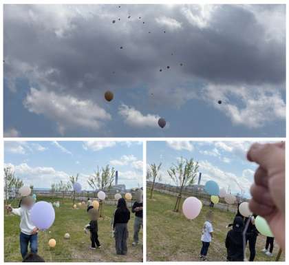 参加した子どもたちで、記念の風船(環境にやさしい風船です)を飛ばしました。良い天気のもとでいい式典になりました。