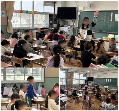 1年生は国語の教科書を見て、何がどこにあるのかを発表しました。わかった子が、しっかり手をあげてはっきりと発表できました。