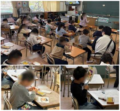それぞれの顔を描いています。細かく、丁寧に色もぬりました。