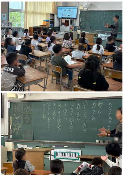 1年生は国語で「あいうえおのうた」を学習しました。リズムに合わせて「ありのこ・・・」とみんなで読みました。何度も読んでいくと・・・。