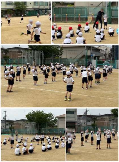 1年生は体育で、こおりおにをしました。運動場をいっぱいに使って駆けまわりました。