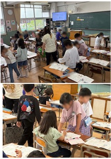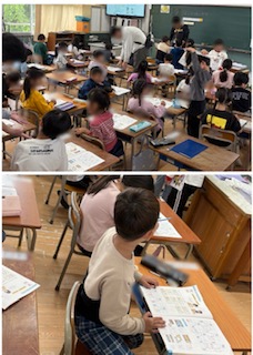 1年生は算数で、「いくつといくつ」の学習をしています。これから学年が上がっていくときに、とても大切な学習の基本です。ブロックを使ったり、図をかいたりして学習しています。友だちと教え合いをしている様子も見られました。