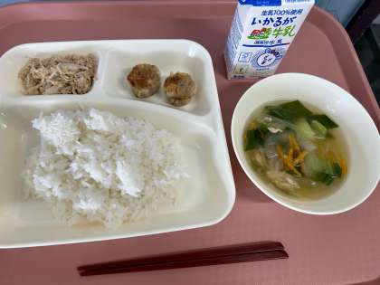 5月16日(金)の献立は「ごはん・牛乳・焼きシューマイ・鶏肉とはるさめのスープ・ツナともやしのいためもの」でした。