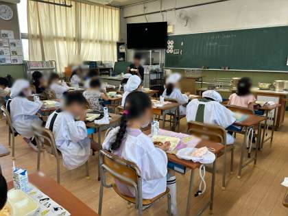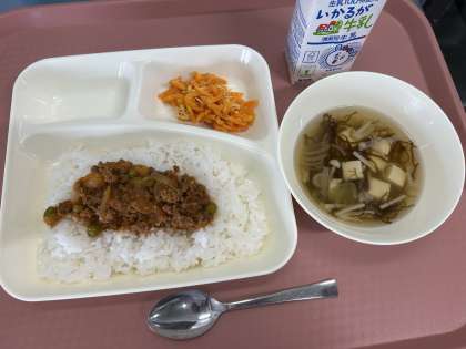5月22日(木)の献立は「タコライス・牛乳・とうふともずくのとろり汁・にんじんしりしり風」でした。