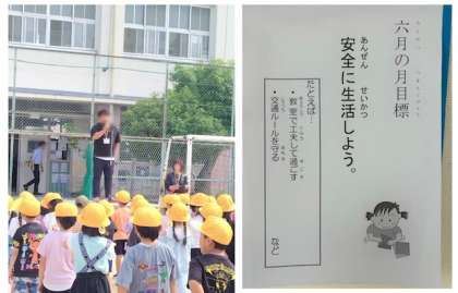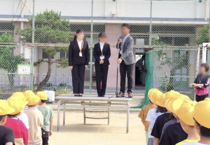 インターン生の紹介と校長先生の話の後に、生活指導担当の先生から、6月の月目標のお話がありました。みんなしっかり聞くことができました。