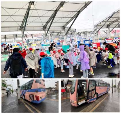 雨の中でしたが会場に到着しました。今からパビリオンの見学です。