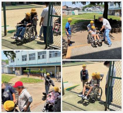 5年生は、リハビリテーションセンターの方々をお招きして、車椅子体験をしました。乗る側になったり、押す側になったりしました。