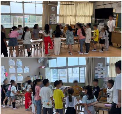 今週金曜日にある「東小フェスティバル」の、学級の出し物の練習をしました。