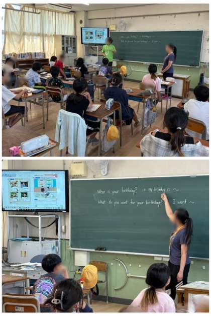 5年生は外国語の学習で、CーNETの先生と誕生日は5日を聞いたり答えたりする学習をしました。