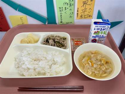 「給食美味しかったです。五目汁好きです。」