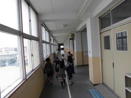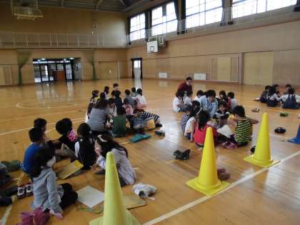 1年生は、学校に通い始めて1カ月と少し。ずいぶん慣れてきたとは言え、自分の教室以外は、学校のどこにどんな教室があるのかほとんどわかりません。そこで、一年先輩の2年生が、校内のいろいろなところを案内しました。