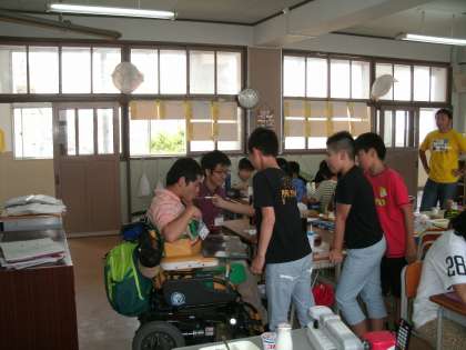 赤おにさんからのクイズの後、赤おにさんへの食事介助の体験をしました。そして、これまでの交流給食ではしていなかったこと;友達とペアになって給食を食べさせ合う体験をしました。これは、人から食事を食べさせてもらう体験を通して、介助する・される、それぞれの立場の気持ちを理解し、介助する時に役立てることをねらいとしています。子ども達は、にこにこと少し照れながら、でも、ねらいをしっかりと理解して取り組んでいました。最後は、玄関までみんなで見送って、第1回目の交流給食を終えました。