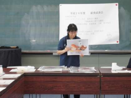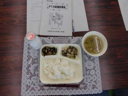 ML教室で給食試食会を行いました。約20名の保護者の方に参加をしていただき、子どもたちがいつも食べている給食を試食していただきました。(今日の献立は、牛肉とキャベツのいためもの・かきたま汁・枝豆入りひじき・ごはん・牛乳でした。)また、矢田北小学校より、栄養士の三村先生をお招きし、食に関する講話をしていただきました。