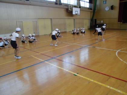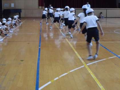 反復横跳びを行いました。上手なお友だちは40回近く跳べたようです。すごい!!