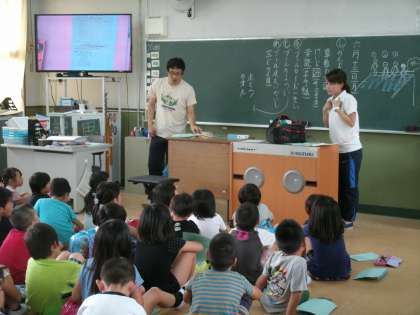 担任は身振り手振り、そして、黒板に絵を描いて説明しました。