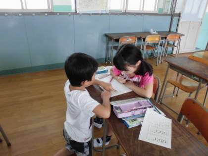 という目あてで学習しました。いくつかの計算を解いてみると子どもたちは、わる数よりあまりのほうが小さくなっていることに気づくことができました。また学習中も教え合いや伝え合いが活発にできています。