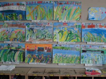 教室に飾ると、なんとも涼しげ♪とっても素敵に、個性豊かに仕上がっています。それぞれがこだわったポイントも書いています。