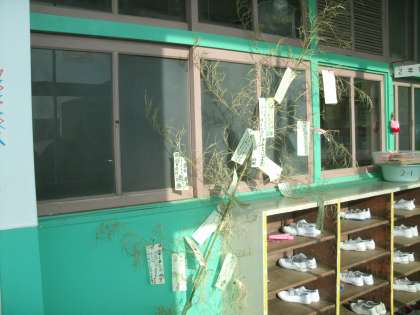 この笹飾りは、来週から始まる個人懇談の時も飾っています。ぜひお子さんの願い事を探してみてください。