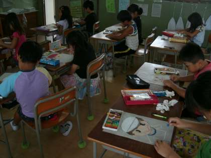 その願い旗を作成しました。今回子供たちが描いた絵は、「自分の顔」。願い旗用の紙に大きく、ていねいに描きました。