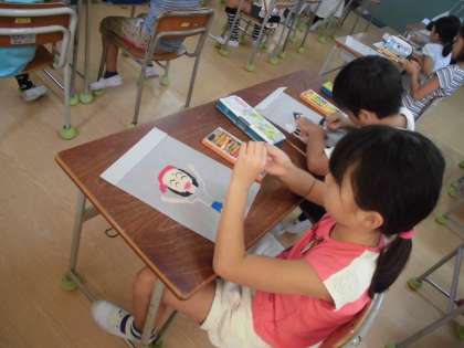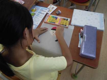 運動会で一生懸命活躍する自分を想像しながら、かわいらしい絵を作り上げていく三年生でした。