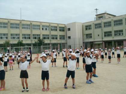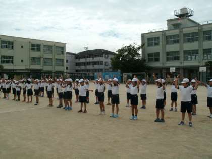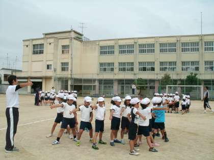 2時間目は、運動場に出て、隊形を確認しながらダンスの練習をしました。トラックの線上に移動したり、中央に横一列で並んだり、小さな円を描いたりと、いろいろな隊形があるので大変ですが、一生懸命練習に励んでいました。