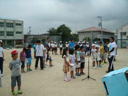 今日の放課後、運動会のリハーサルが行われました。その中には、各学年代表児童の言葉の練習もありました。そこで、2年生からも、赤白それぞれ2人が残ってリハーサルに参加しました。