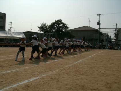 プログラム22番『ひっぱれ☆3シャイン』は3年生による綱引きです。3年生とはいえ、みんなで協力して綱を引くと、綱がピーッンと張って切れるのではないかと心配するほどでした。手に汗握る戦いとなりました。