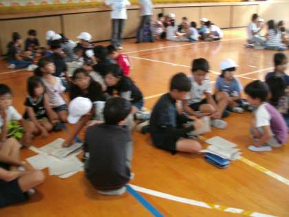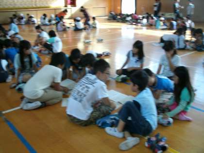 今日の児童集会では、まず『なかよし班遊び』でどんな遊びをするか6年生のリーダーを中心になかよし班で話し合いました。低学年の意見もくみ上げて、低学年から高学年まで楽しく遊ぶことができる内容(おにごっこ、だるまさんが転んだ、ゴム跳びなど)を考えていました。