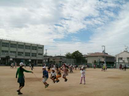 北運動場ではゴム跳びやだるまさんが転んだ、運動場では大なわや鬼ごっこ、体育館ではゴム跳びなど、班の中で相談して決めた遊びをして交流を深めました。