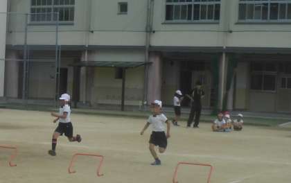 跳ぶ運動を含めて走るのが初めてだったこともあり、苦戦する子どももいれば、中にはすいすいとハードルを跳び、走ることのできている子どもなど様々でした。