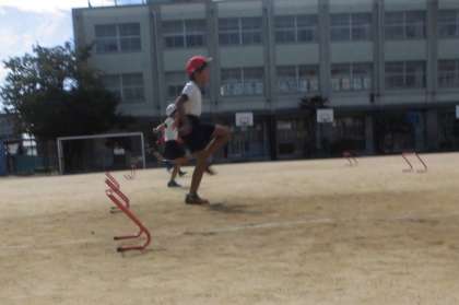 今日のハードル走では、より早く走るために足をどのように動かせばいいか、ハードル間の歩数はどうすればいいか、などについて学習しました。自分にとってちょうどいい幅が開いたハードルを選び、子どもたちは何度も練習に取り組みました。