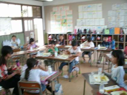昨日、矢田東小学校の校区に住んでいるけど、違う学校に通っている2年生の友達がやってきて、給食時間から5時間目の学習までいっしょに学校生活を送って交流を深めました。