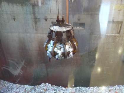 クレーンがごみをつかんでいるところやごみを燃やした後の灰などを見学しました。