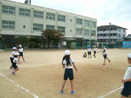 その時によくありがちなのが、自己中心的なプレー。得意で上手な子が、ボールを取って(苦手な子からもらって)投げる。その子ばかり活躍する・・・。そういう場面が見られません。反対に、友達にボールを譲ってあげたり、近くの子を当てる時は下から優しく投げたり…と、みんなが楽しめるように子どもたち一人一人が考えてドッジボールに参加していました。見ていて、とても気持ちがよかったです。また、すべってこけてもすぐに立ち上がり、試合を続ける態度にも感心しました。