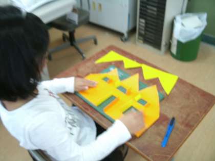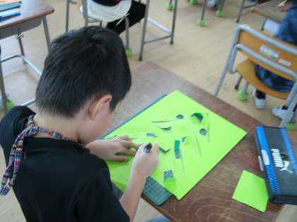 また技能面では、こちらが注意しなくても、一人一人がカッターナイフを使う時のルールを守り、安全に切っていました。短期間のうちに、とても上手に使うことができるようになりました。