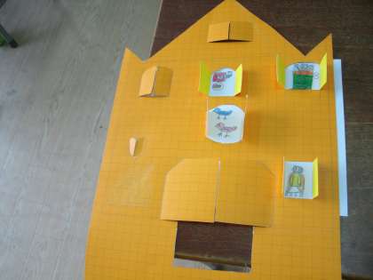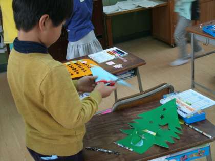 作品展以降、『窓』をテーマに、カッターナイフを使って作品づくりをしてきました。今までは、窓を作っていましたが、今日は窓を開けた「中」の部分を作成しました。窓を開けると、かわいい少女や動物が顔を出したり、クリスマスに関係するものが出てきたりと、子ども達の豊かな発想が輝く絵が出てきました。完成したものを壁に飾ると、きっと素晴らしいアートとして、部屋に彩りを与えてくれることでしょう。