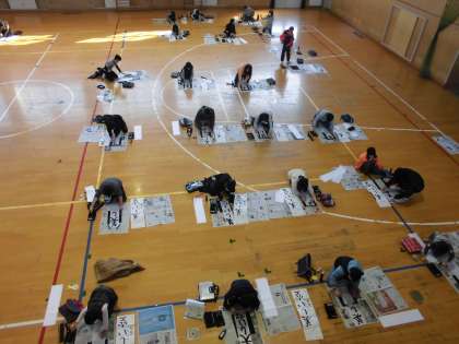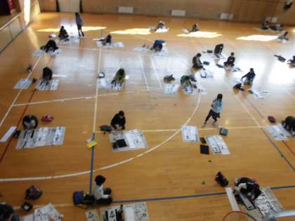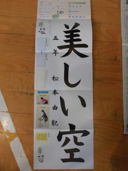 今日は講堂で書き初めをしました。子どもたちは初めて床に座りながら筆で「美しい空」と書きました。初めて書くとは思えないくらい丁寧な字で書けていました!